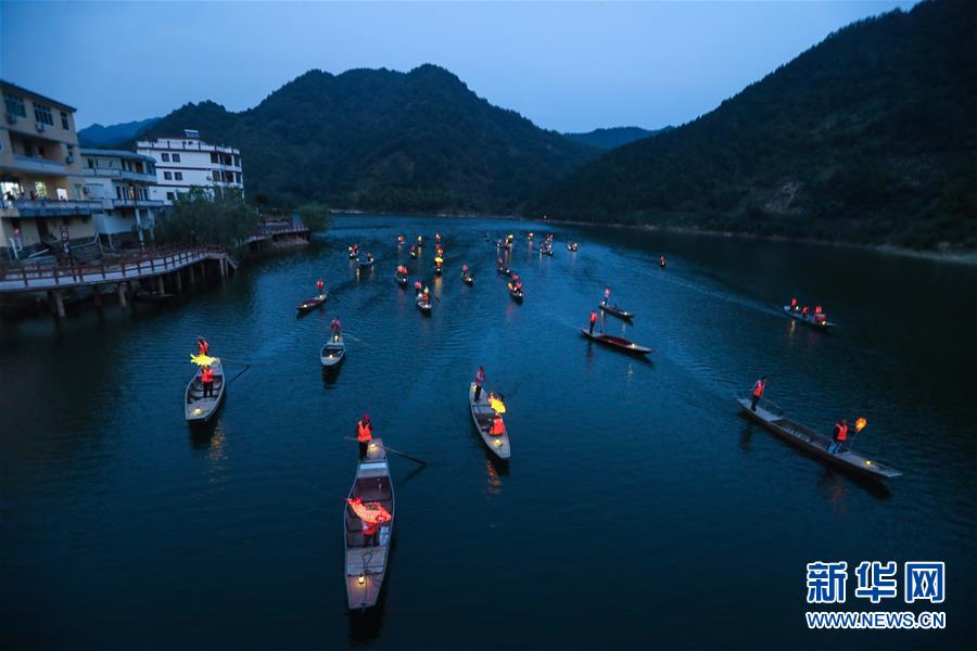 9月25日,在宋村鄉(xiāng)云源港的水面上,漁民劃著漁船,船頭點(diǎn)亮漁燈,構(gòu)成一幅“漁舟唱晚、萬家燈火”的美麗圖景。 新華社記者 徐昱 攝