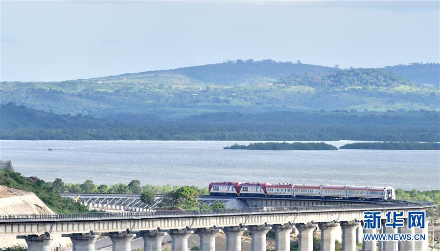 2017年5月29日,一列肯尼亞蒙內(nèi)鐵路測(cè)試列車行駛在蒙巴薩特大橋上。由中國承建的蒙巴薩-內(nèi)羅畢標(biāo)軌鐵路(蒙內(nèi)鐵路)全長約480公里,于2017年5月通車。新華社記者孫瑞博攝
