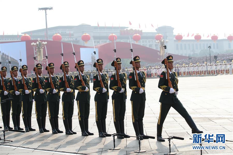 10月1日上午,慶祝中華人民共和國(guó)成立70周年大會(huì)在北京天安門(mén)廣場(chǎng)隆重舉行。這是標(biāo)兵就位。新華社記者孟永民攝