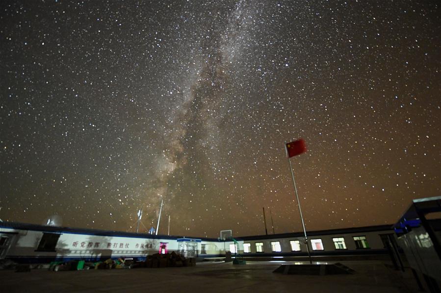 這是在內(nèi)蒙古自治區(qū)額濟(jì)納旗算井子邊境派出所拍攝的星空(9月26日攝)。新華社記者劉磊攝