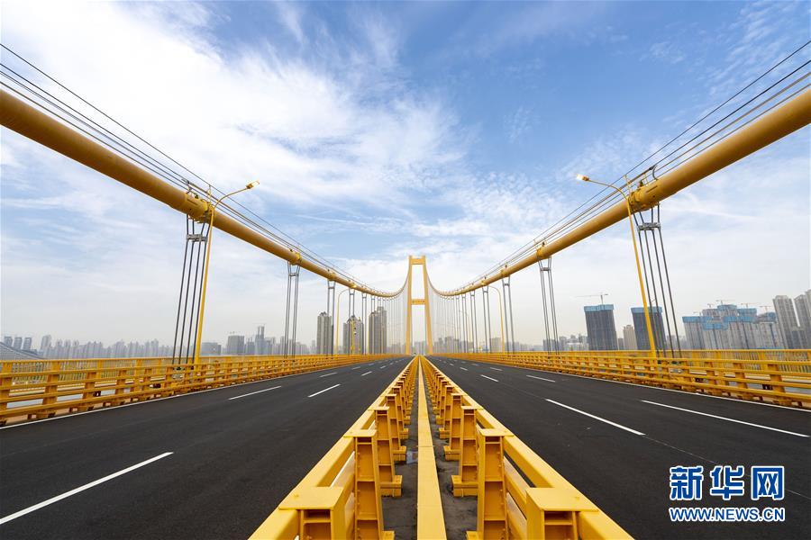 楊泗港大橋建設(shè)創(chuàng)造了多項(xiàng)世界之最:一是主橋跨度達(dá)1700米,為世界上跨度最大的雙層懸索橋;二是主橋設(shè)置雙層雙向12車(chē)道,是世界上通行能力最大的公路橋梁;三是大橋主纜設(shè)計(jì)張力6.5萬(wàn)噸,采用了世界上強(qiáng)度等級(jí)最高的主纜鋼絲;四是大橋設(shè)置機(jī)動(dòng)車(chē)道、非機(jī)動(dòng)車(chē)道、人行觀光道,集過(guò)江交通與觀光于一體,是長(zhǎng)江上功能最完備的橋梁。新華社記者熊琦攝