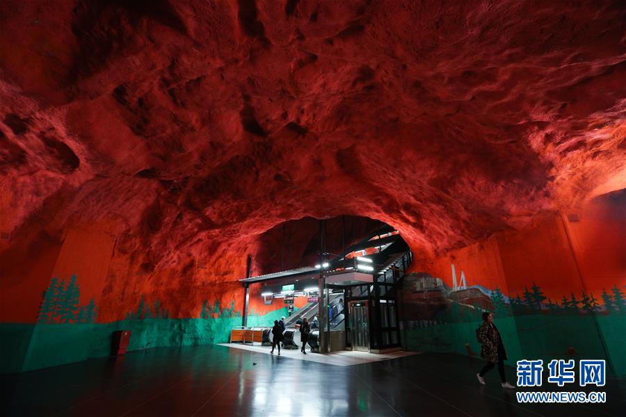 10月8日,在瑞典斯德哥爾摩,乘客在一處地鐵站內(nèi)行走。在瑞典首都斯德哥爾摩,每座地鐵站的站臺(tái)、墻壁及大廳的風(fēng)格設(shè)計(jì)都無(wú)一相同,各有特色。藝術(shù)家們運(yùn)用了各類(lèi)藝術(shù)元素裝點(diǎn)地鐵站,色彩繽紛的視覺(jué)效果既突出了每個(gè)站臺(tái)的個(gè)性,也豐富了乘客的旅途體驗(yàn)。走進(jìn)斯德哥爾摩地鐵,仿佛置身于一座“地下藝術(shù)長(zhǎng)廊”。新華社記者鄭煥松攝