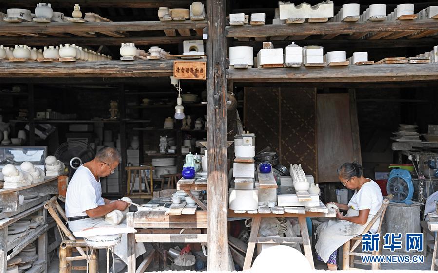 在江西景德鎮(zhèn)御窯廠遺址附近的一處老窯廠內(nèi),工匠們?cè)谥谱鞔善鳎?018年9月20日攝)。新華社記者 萬象 攝