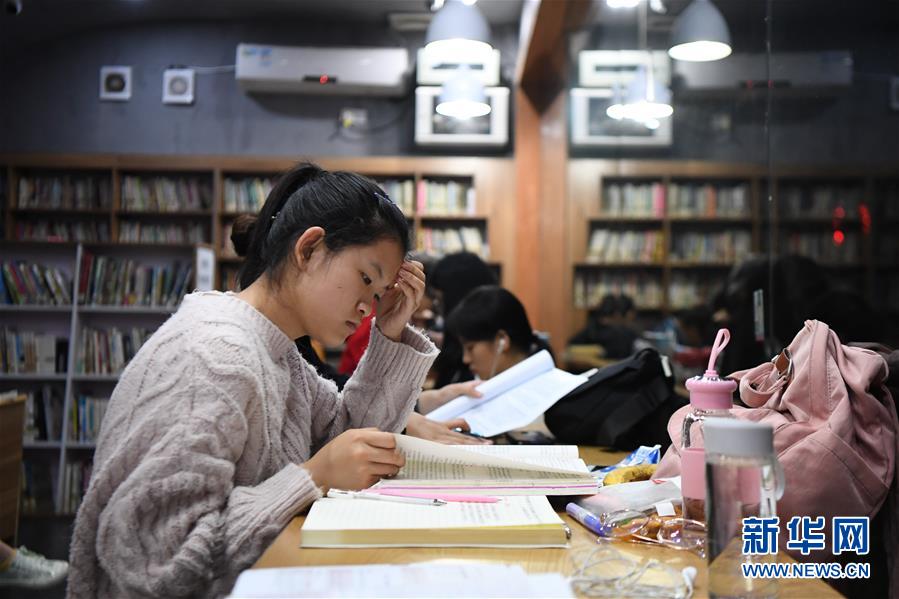 10月12日,一位讀者在湖南圖書(shū)館6點(diǎn)至24點(diǎn)開(kāi)放的自助圖書(shū)館內(nèi)看書(shū)學(xué)習(xí)。新華社記者薛宇舸攝