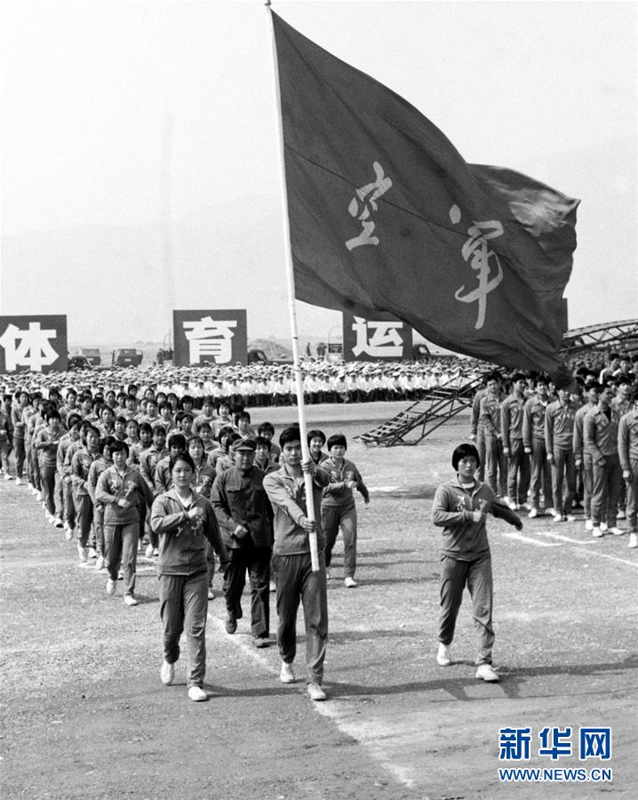 中國人民解放軍第四屆體育運(yùn)動(dòng)大會(huì)于1979年5月13日在北京隆重開幕。這是空軍運(yùn)動(dòng)員在第四屆全軍運(yùn)動(dòng)會(huì)開幕式上。新華社記者吳森輝攝