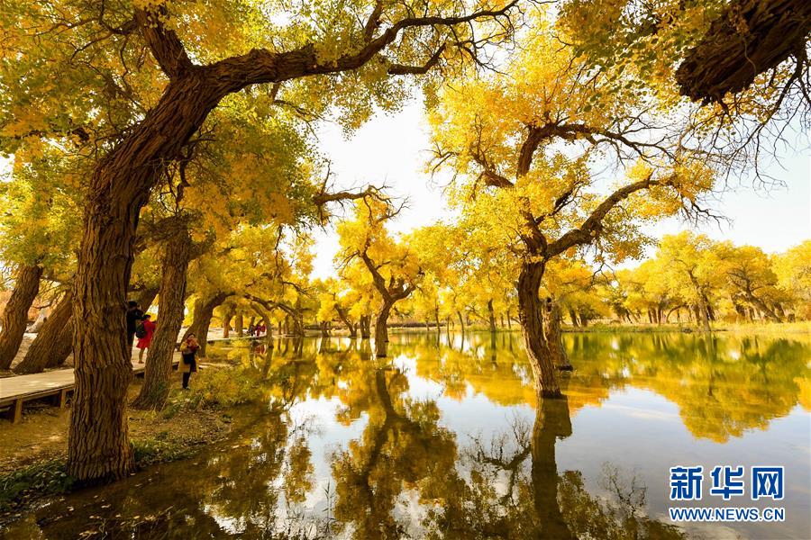 10月16日,這是內蒙古阿拉善盟額濟納旗境內的胡楊林。金秋時節(jié),位于內蒙古阿拉善盟額濟納旗境內的胡楊林披上了金黃色的外衣,在陽光的照射下呈現絢麗奪目的色彩,成為沙漠深處的一抹亮色。新華社記者彭源攝
