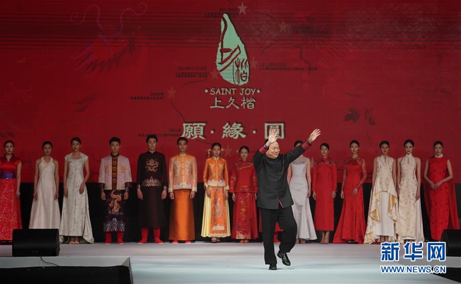10月16日,“愿·緣·圓”上久楷婚慶主題秀在江蘇省蘇州市吳江區(qū)盛澤鎮(zhèn)舉行。主題秀上展示大量帶有龍鳳、牡丹、海棠、彩蝶等中國(guó)傳統(tǒng)文化元素的宋錦中式婚慶禮服。 新華社記者 季春鵬 攝