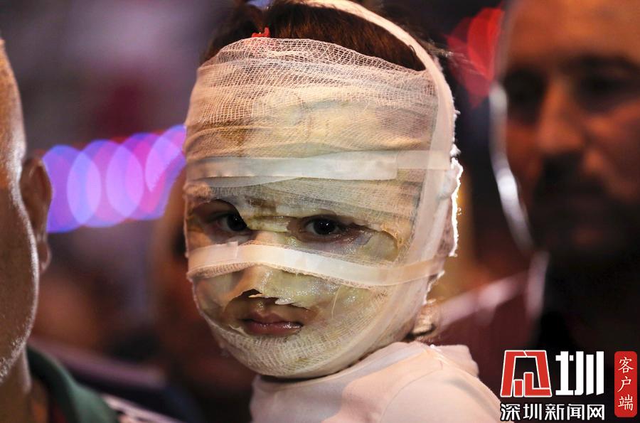 當?shù)貢r間2016年7月9日,伊拉克卡拉達,4歲的Asal Ahmed在爆炸現(xiàn)場被爸爸抱著。開齋節(jié)期間,Asal和媽媽一起逛街,結果碰上一起自殺性炸彈襲擊,兩人都嚴重燒傷。