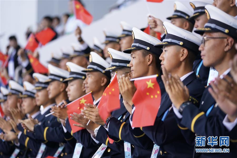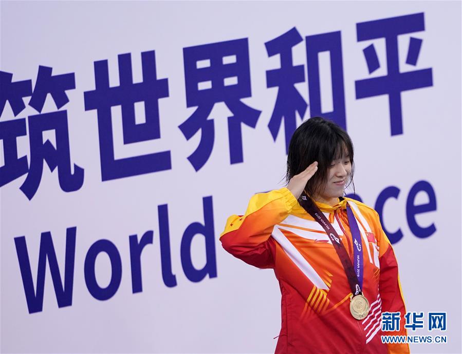 10月20日,中國隊選手吳慧敏(右)、包雪怡在升旗儀式上。 當(dāng)日,在武漢舉行的第七屆世界軍人運動會水上救生項目女子50米假人救生決賽中,中國隊選手吳慧敏以33秒93的成績奪得冠軍,隊友包雪怡以35秒79的成績獲得亞軍。 新華社記者肖藝九攝
