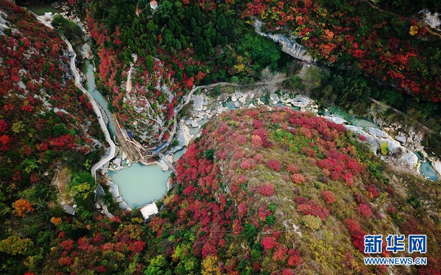 10月24日,游客在河北省武安市賀進(jìn)鎮(zhèn)后臨河村觀賞紅葉。金秋時(shí)節(jié),位于太行山區(qū)的河北省武安市賀進(jìn)鎮(zhèn)后臨河村的紅葉進(jìn)入觀賞佳期。新華社記者王曉攝
