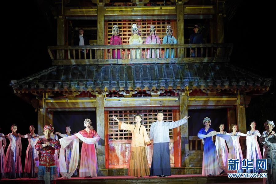 10月24日,演員在表演實(shí)景劇《那年芳華》。 河北省唐山市在南湖景區(qū)打造沉浸式實(shí)景劇《那年芳華》。該劇以南湖景區(qū)的自然景觀為載體,利用光影藝術(shù),展現(xiàn)了梨園人的家國情懷。 新華社記者 邢廣利 攝