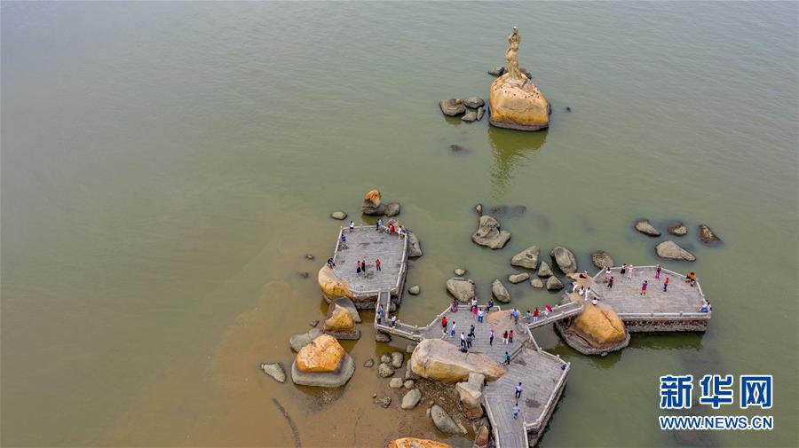 10月24日下午無人機(jī)拍攝的珠海標(biāo)志性景觀——珠海漁女。2018年10月23日,港珠澳大橋正式開通。新華社記者張金加攝
