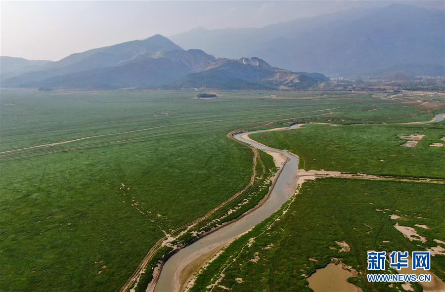 這是在江西省廬山市拍攝的鄱陽(yáng)湖湖區(qū)(10月9日無(wú)人機(jī)拍攝)。