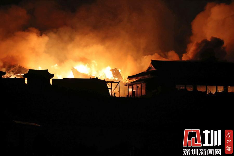 日本沖繩縣那霸市的琉球王國都城遺址首里城火災現(xiàn)場。