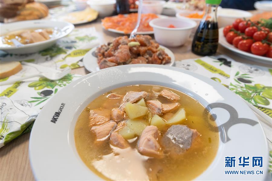 這是9月13日在俄羅斯摩爾曼斯克以北的巴倫支海域的鮭魚養(yǎng)殖場(chǎng)拍攝的鮭魚湯。 新華社記者白雪騏攝