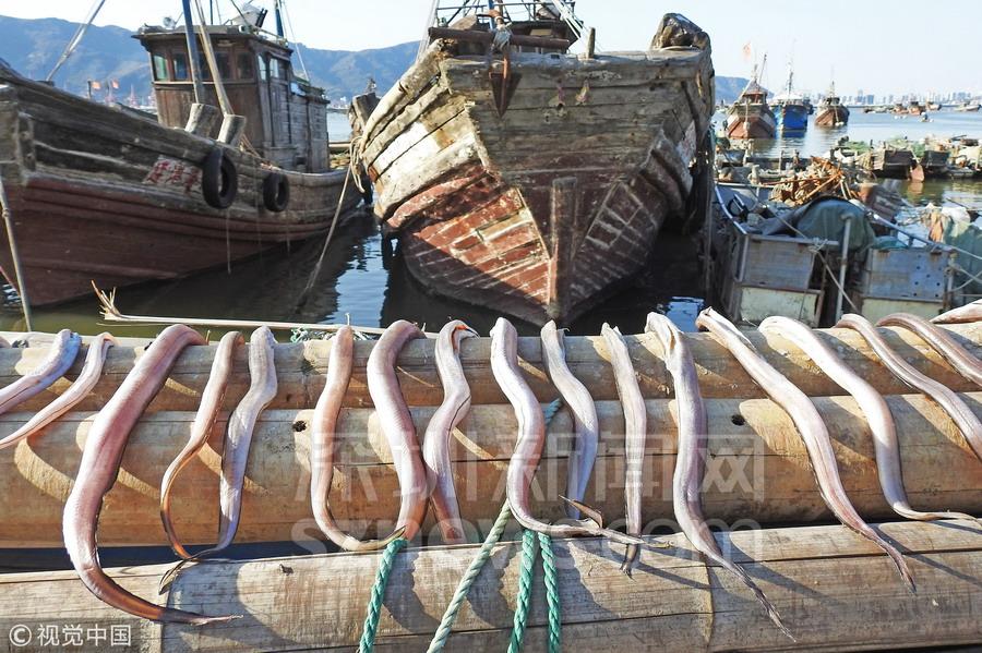 金秋時節(jié),江蘇連云港市沿海秋捕迎來豐收,漁民們將捕獲的鯧魚、鰻魚、小黃魚、烏賊等經過腌制、晾曬加工成魚干,海島處處呈現出一派豐收景象。