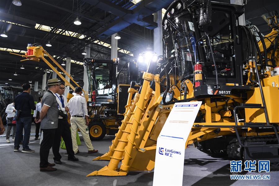 11月16日,參觀者在展會現(xiàn)場參觀甘蔗收割機械設備。新華社記者曹祎銘攝