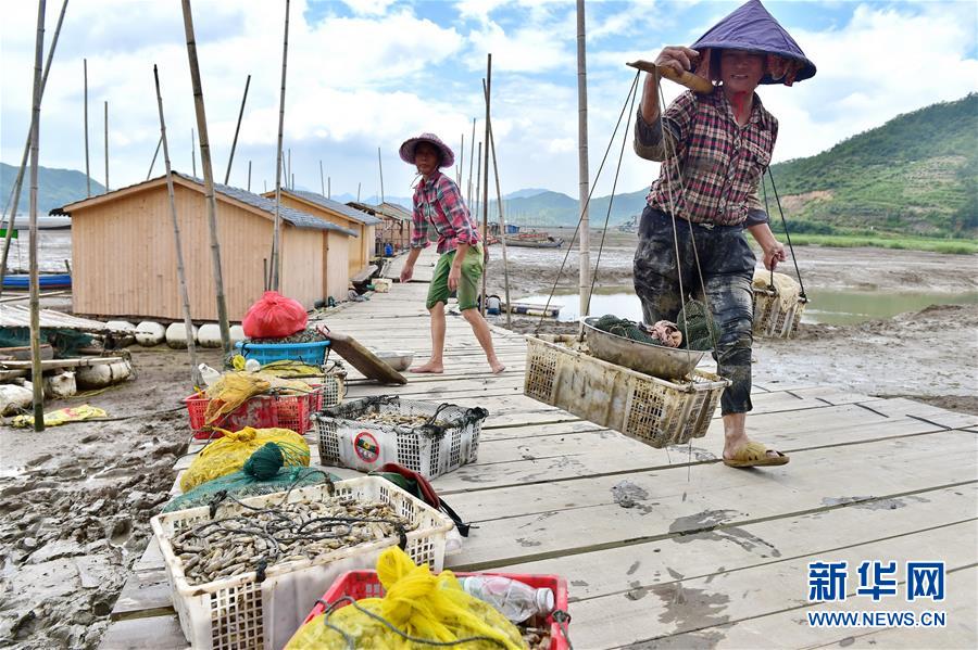 8月22日,福安市溪邳村村民將收獲的海蟶挑回家。新華社記者林善傳攝