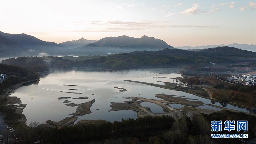 這是11月15日無人機(jī)拍攝的安徽黟縣奇墅湖晨景。新華社記者張笑宇攝