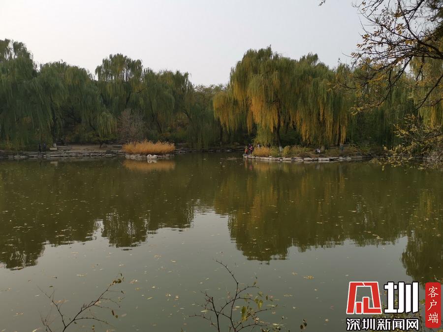 未名湖畔紅葉多姿、美麗寧?kù)o。