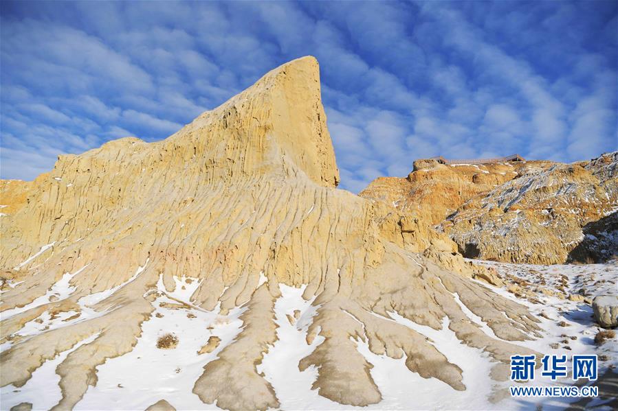 11月26日拍攝的新疆福??h烏倫古湖海上魔鬼城景區(qū)美景。福??h烏倫古湖海上魔鬼城景區(qū)位于新疆阿勒泰地區(qū)福??h吉力湖東岸,有著獨(dú)特的雅丹地貌和水域景觀(guān),是當(dāng)?shù)刂穆糜蝿俚?。新華社記者沙達(dá)提攝