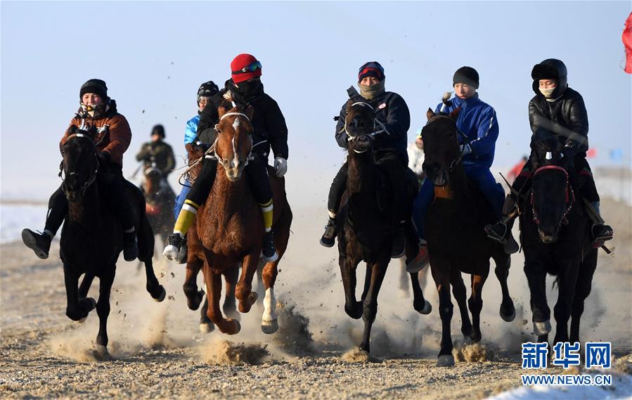 11月26日,在新疆福海縣烏倫古湖海上魔鬼城景區(qū),小騎手們參加賽馬比賽。新華社記者沙達(dá)提攝