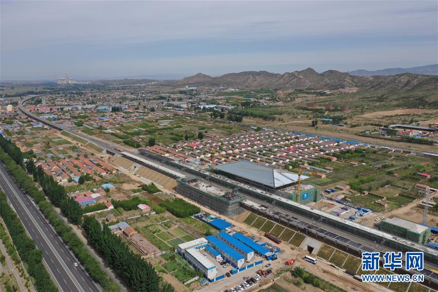 5月28日無人機拍攝的建設中的京張高鐵懷來站。新華社記者邢廣利攝