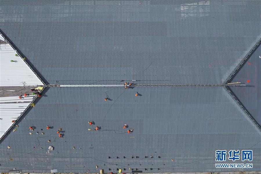 工人在宣化北站施工(5月30日無(wú)人機(jī)拍攝)。新華社記者邢廣利攝