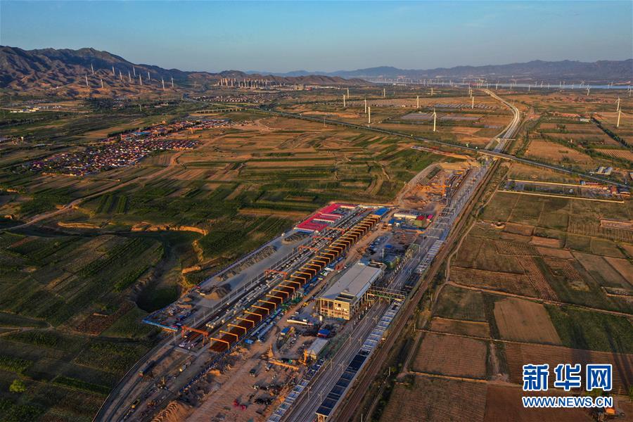 5月28日無(wú)人機(jī)拍攝的建設(shè)中的京張高鐵懷來(lái)站。新華社記者邢廣利攝