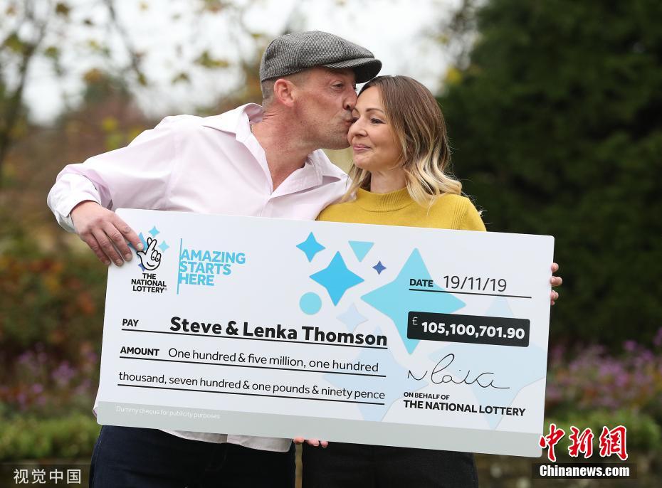 當(dāng)?shù)貢r(shí)間11月26日,英國(guó)奇切斯特一對(duì)普通工作者幸運(yùn)贏得足以改變?nèi)松莫?jiǎng)金——1.05億英鎊。圖片來(lái)源:視覺(jué)中國(guó)