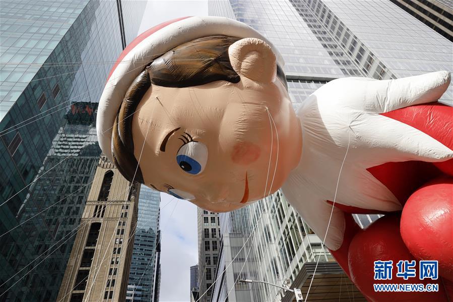 11月28日,在美國紐約舉行的感恩節(jié)大游行上,卡通氣球行進(jìn)在曼哈頓街頭。 新華社記者 李木子 攝