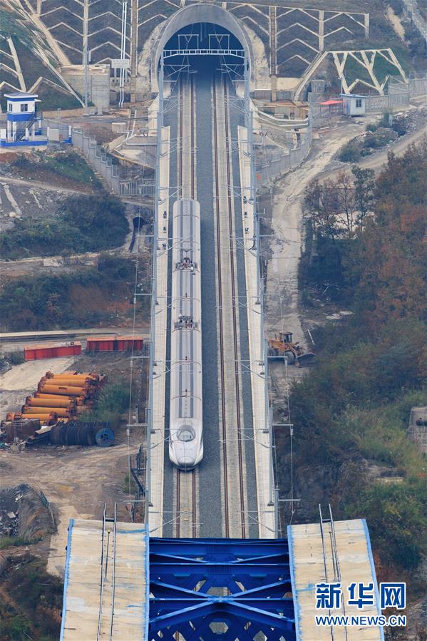 12月2日,一輛試驗列車駛過成貴高鐵鴨池河特大橋。當日,正在進行聯(lián)調聯(lián)試的成貴高鐵進入全線拉通空載模擬運行階段,試驗列車將在成都到貴陽區(qū)間內全線路運行。線路全長650公里的成貴高鐵是我國“八縱八橫”高速鐵路網(wǎng)的重要組成部分,設計時速為250公里。新華社記者劉續(xù)攝