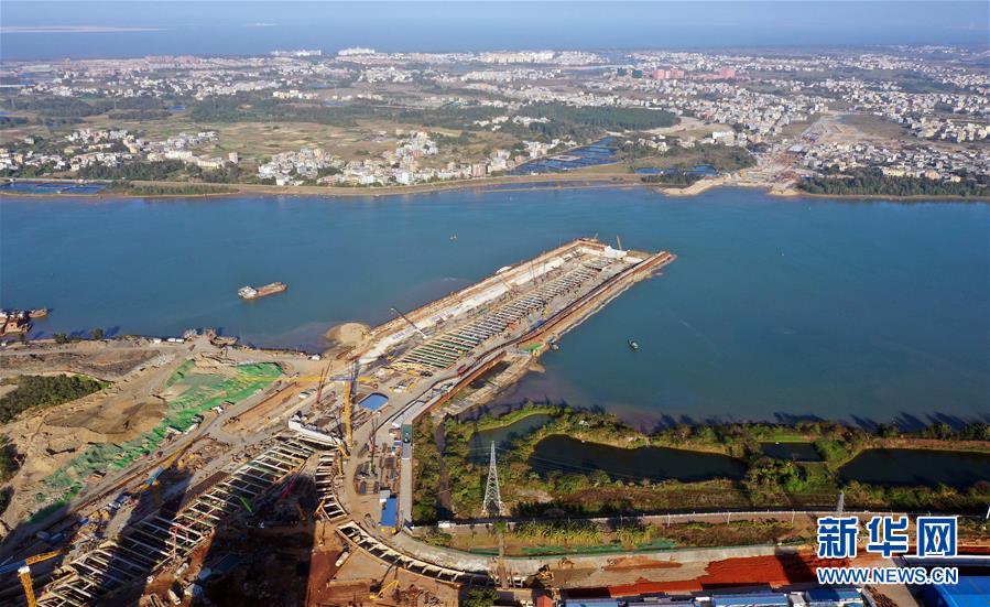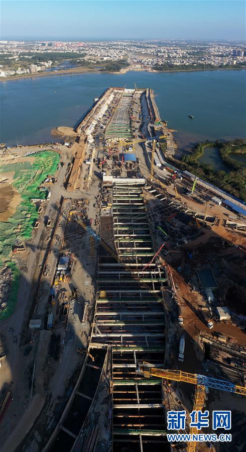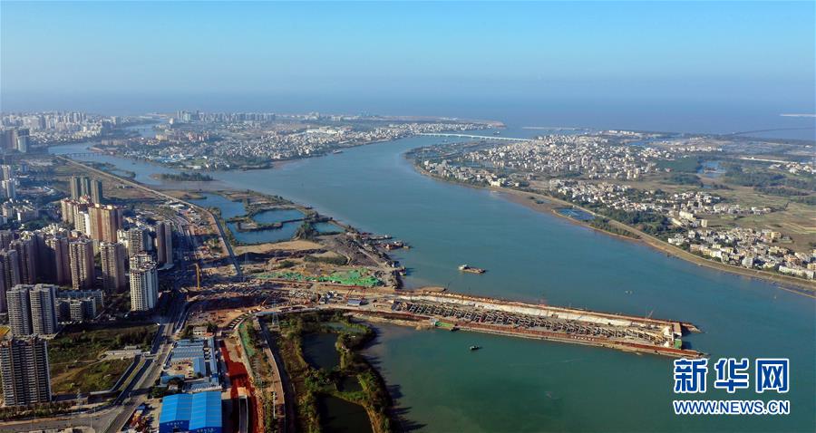 正在施工的海口文明東越江通道項(xiàng)目(12月14日無人機(jī)拍攝)。 新華社記者 郭程 攝