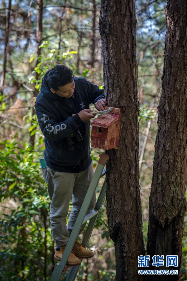 羅康在哀牢山的松樹林里查看上一批人工巢箱的鳥類入住情況(12月12日攝)。 31歲的羅康是云南省瀾滄縣人,從事鳥類生態(tài)學研究已有8年時間。作為中科院鳥類繁殖學的在讀博士,羅康離開城市,一頭扎進哀牢山深處,以森林為家,與鳥兒為伴。 羅康在研究過程中發(fā)現(xiàn),由于松林內(nèi)天然樹洞很少,導致食蟲鳥類(主要為洞巢鳥)的繁衍與生存質(zhì)量受到較大影響。查閱大量資料后,他決定學習西方國家應用比較廣泛、已有100多年歷史的人工巢箱,為這些鳥兒搭建“別墅”。 目前,羅康已安置人工鳥巢500余個,共有遠東山雀、綠背山雀、黃頰山雀等7種鳥類入住,總體入住率約25%。他還在部分人工巢箱里裝上攝像頭,用于研究鳥類的生活習性。 “通過對人工鳥巢里的視頻錄像進行分析,我們發(fā)現(xiàn)入住鳥類以松毛蟲喂食幼鳥的比例非常高?!绷_康表示,安置人工鳥巢不僅能幫助鳥類在森林中安家落戶、繁衍生息,也能有效防治森林病蟲害。明年一月底前,他將再安置500個人工巢箱。 新華社記者 胡超 攝