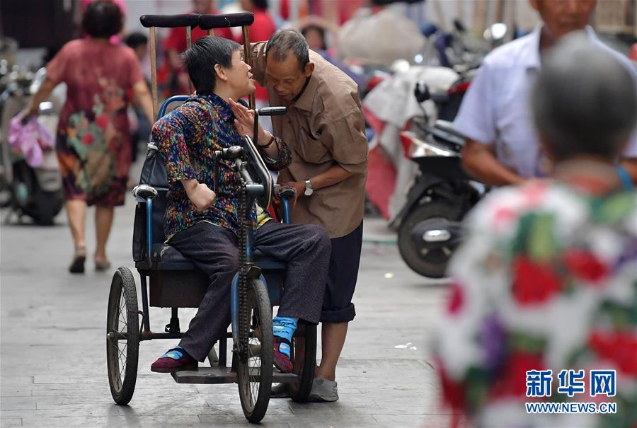 葉文娟在熊金根耳邊交代要買的東西(10月2日攝)。江西省南昌市西湖區(qū)繩金塔社區(qū)有一對(duì)特殊的夫妻,74歲的丈夫熊金根聽(tīng)力殘疾,67歲的妻子葉文娟患小兒麻痹癥后行動(dòng)不便。夫妻二人相互照顧相濡以沫度過(guò)了30余年。新華社記者彭昭之?dāng)z