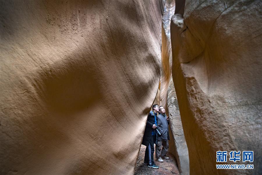 12月17日,游人在志丹縣雙河鎮(zhèn)毛項峽谷內(nèi)游覽。新華社記者陶明攝