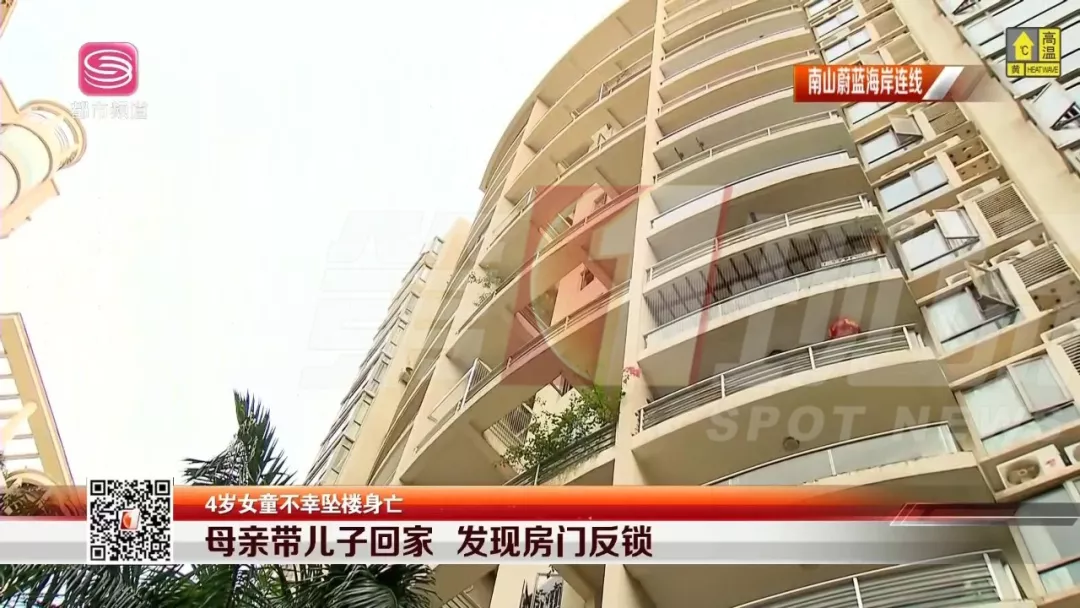 2019年7月26日凌晨,深圳市南山區(qū)蔚藍海岸3期,一名4歲女童被母親獨自留在家中,從15樓高墜后身亡。據(jù)知情人士透露,女童家人以為孩子已熟睡,便出門買夜宵。但沒成想,孩子在家人買飯途中醒來,在找尋家人的過程中,不慎從陽臺跌落。