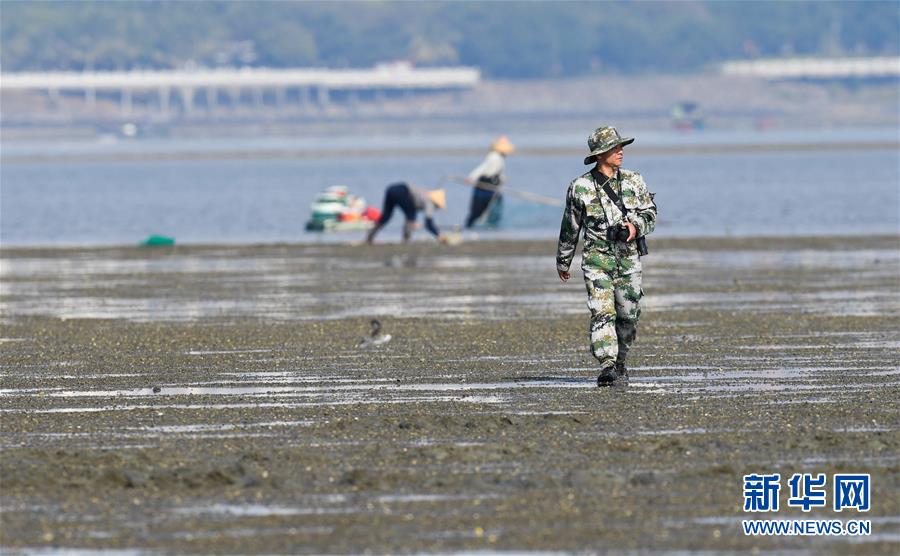 海南儋州新英灣紅樹林市級(jí)自然保護(hù)區(qū)護(hù)林員陳正平在保護(hù)區(qū)內(nèi)的灘涂上巡護(hù)(12月10日攝)。陳正平2010年開始在保護(hù)區(qū)工作,他將工作發(fā)展成愛好,廣泛參加各種培訓(xùn)和業(yè)內(nèi)交流。他在工作中拍到瀕危鳥類白肩雕出現(xiàn)在海南的照片,這刷新了海南省的鳥種記錄。新華社記者楊冠宇攝