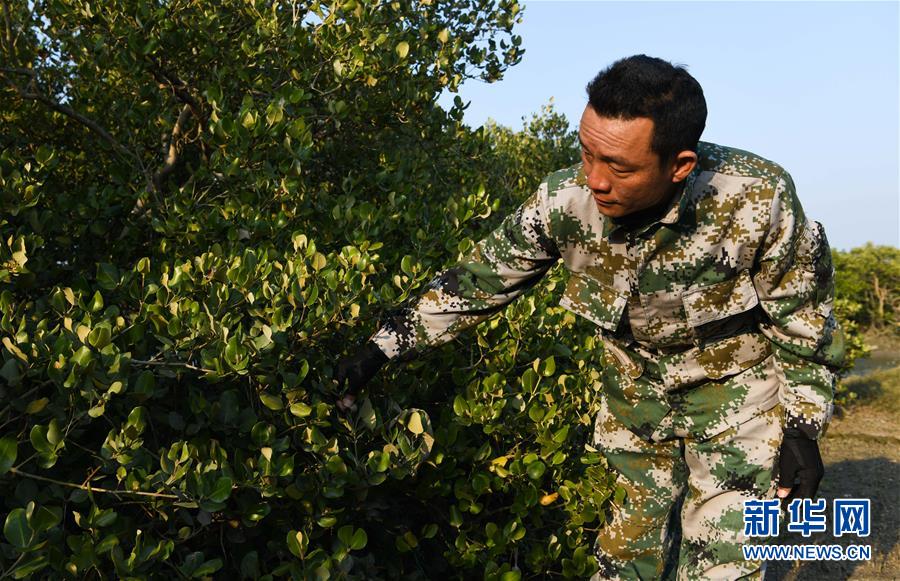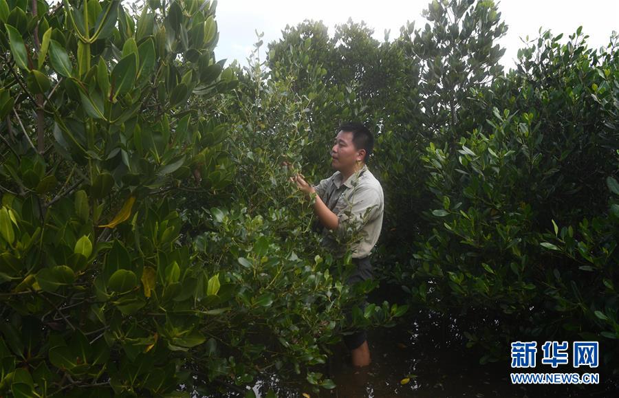 海南新盈紅樹林國(guó)家濕地公園巡護(hù)員兼監(jiān)測(cè)員羅理想在濕地公園內(nèi)的灘涂上做監(jiān)測(cè)(11月27日攝)。 羅理想2006年起開始參與紅樹林濕地的保護(hù)工作,近年來(lái)他參加了很多關(guān)于濕地的培訓(xùn)。2016年,羅理想在工作中監(jiān)測(cè)到極危鳥種勺嘴鷸,當(dāng)時(shí)有許多媒體做了報(bào)道,后來(lái)他又配合專家在濕地公園里發(fā)現(xiàn)了拉氏紅樹,“那個(gè)時(shí)候感覺(jué)自己的工作很有價(jià)值”,羅理想說(shuō)。 新華社發(fā)