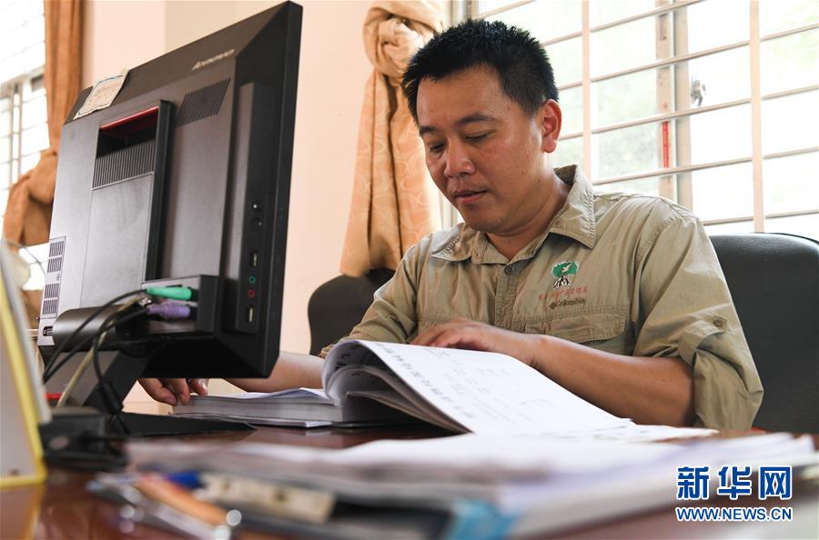 海南東寨港國(guó)家級(jí)自然保護(hù)區(qū)林業(yè)工程師馮爾輝在保護(hù)區(qū)內(nèi)的辦公室查看相關(guān)資料(12月18日攝)。 馮爾輝2009年大學(xué)畢業(yè)后來(lái)到保護(hù)區(qū)工作,小時(shí)候他家就住在紅樹林邊上,他從小和紅樹林打交道,喜歡動(dòng)植物和鳥類。外貿(mào)專業(yè)畢業(yè)的他邊工作邊學(xué)習(xí),目前主要從事鳥類監(jiān)測(cè)、紅樹林保育、自然教育等工作?!凹t樹林看著我長(zhǎng)大”,馮爾輝說(shuō),濕地保護(hù)的工作非常有意義。 新華社記者楊冠宇攝
