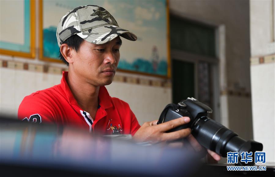 海南清瀾港省級(jí)自然保護(hù)區(qū)護(hù)林員呂詩(shī)陽(yáng)在保護(hù)區(qū)內(nèi)的辦公室里查看自己拍攝的照片(12月17日攝)。 新華社記者楊冠宇攝