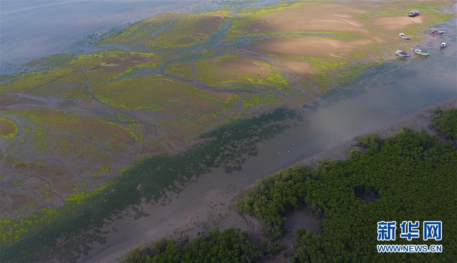 海南儋州新英灣紅樹林市級(jí)自然保護(hù)區(qū)的紅樹林和灘涂(12月10日無(wú)人機(jī)拍攝)。新華社記者楊冠宇攝