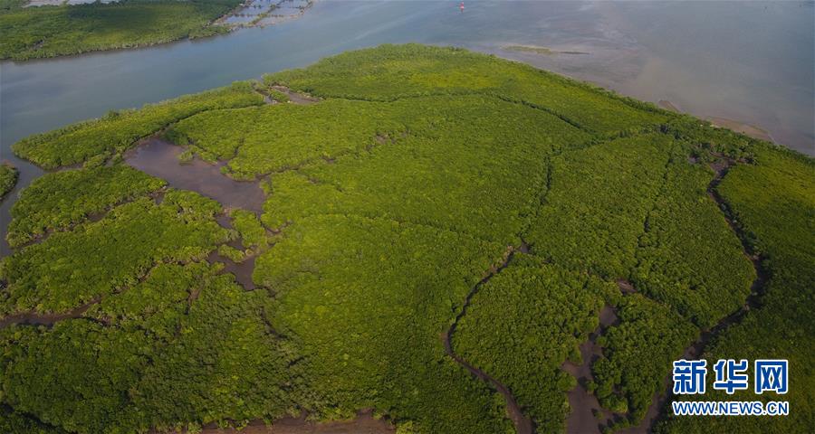 海南新盈紅樹林國(guó)家濕地公園的紅樹林(12月10日無(wú)人機(jī)拍攝)。 新華社記者楊冠宇攝