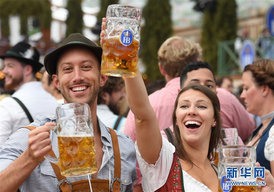 2019年9月21日,人們?cè)诘?86屆德國慕尼黑啤酒節(jié)上享用啤酒。 新華社記者 逯陽 攝