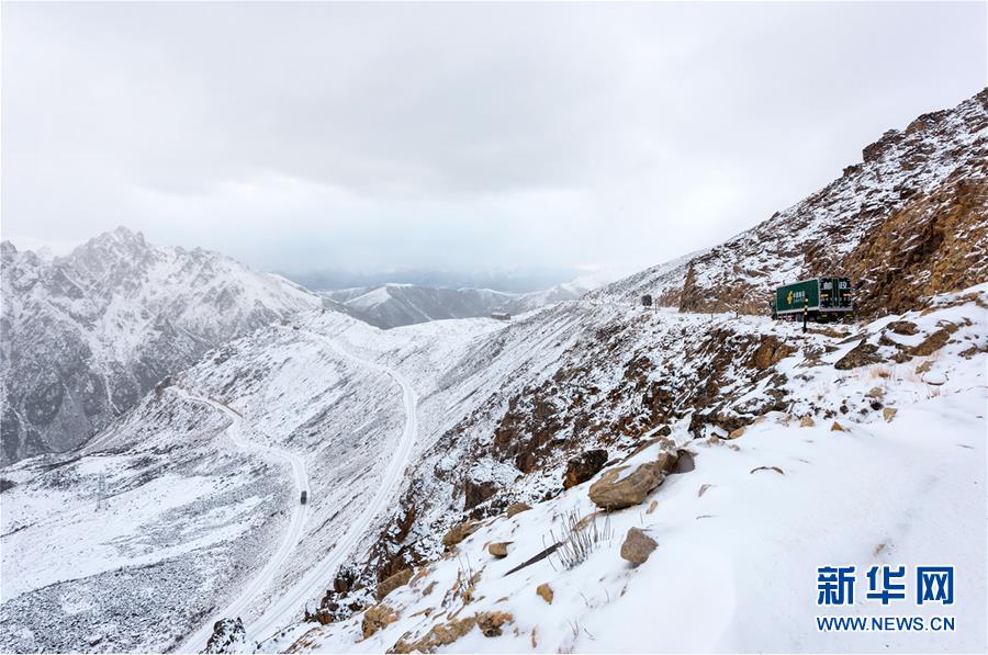 這是318國(guó)道剪子彎山段,大雪過(guò)后銀裝素裹(10月17日無(wú)人機(jī)拍攝)。新華社記者江宏景攝
