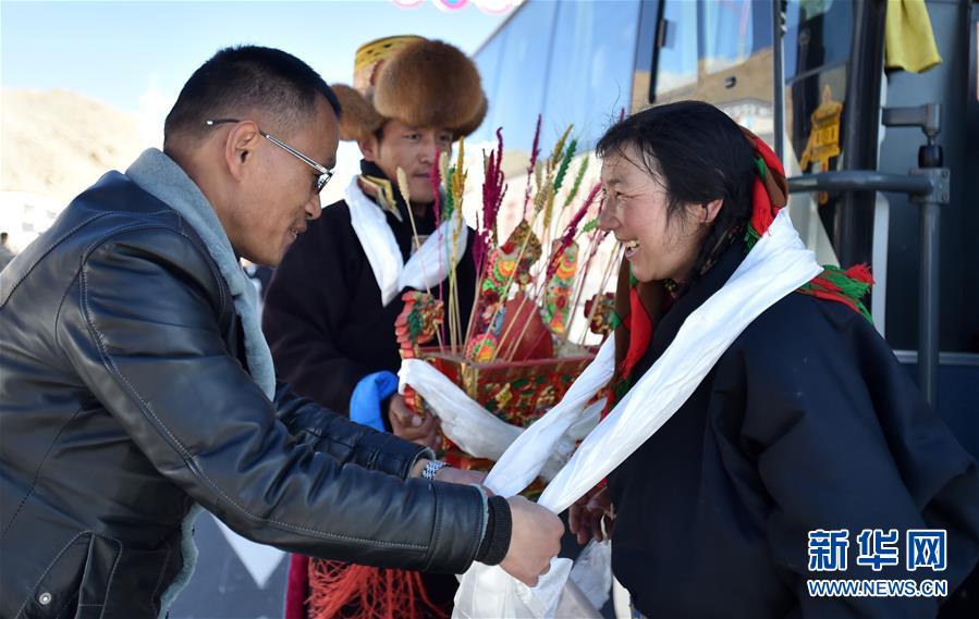 12月23日,貢嘎縣群眾迎接新來的村民。新華社記者覺果攝