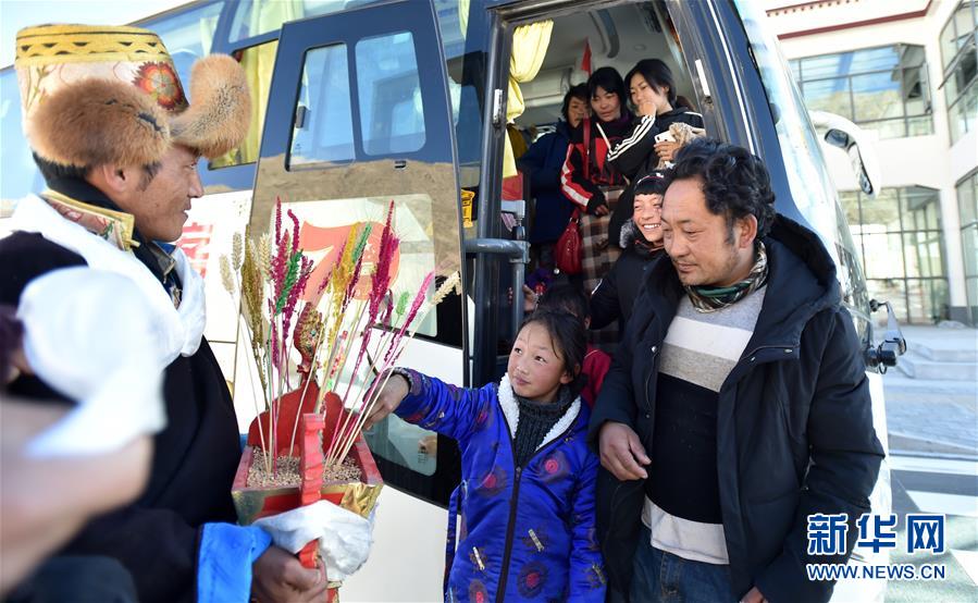 12月23日,貢嘎縣群眾迎接新來(lái)的村民。新華社記者覺(jué)果攝