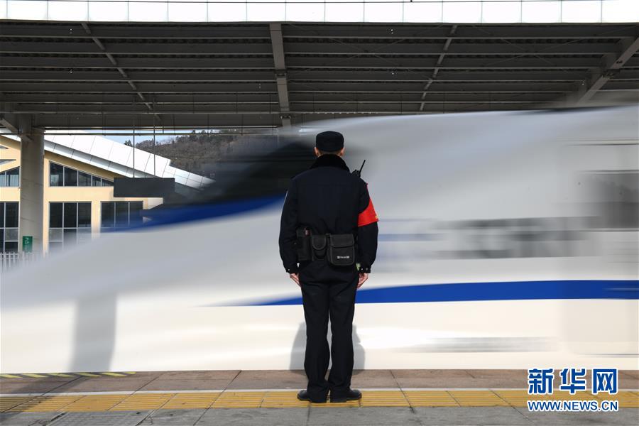 金寨火車(chē)站派出所民警張嗣一在站臺(tái)接車(chē)(12月19日攝)。安徽合肥鐵路公安處金寨火車(chē)站派出所位于大別山腹地。在這里,除了所領(lǐng)導(dǎo)外,青年民警平均年齡不到29歲。他們遠(yuǎn)離家鄉(xiāng),扎根大山深處的小站派出所,戰(zhàn)斗在守護(hù)客運(yùn)平安的第一線。新華社記者張端攝