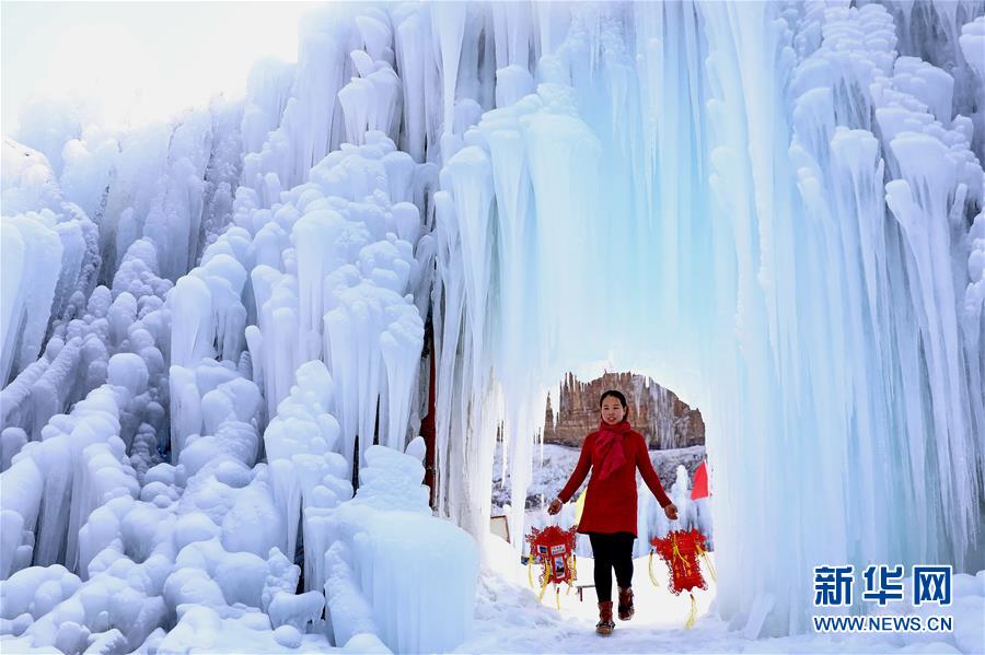 12月25日,一名游客在平山縣沕沕水景區(qū)游覽。新華社記者楊世堯攝
