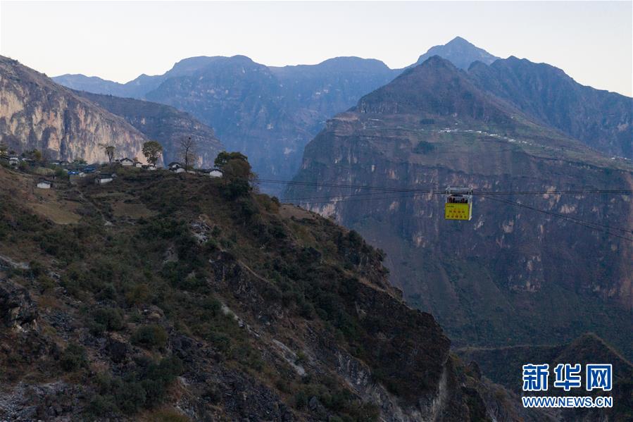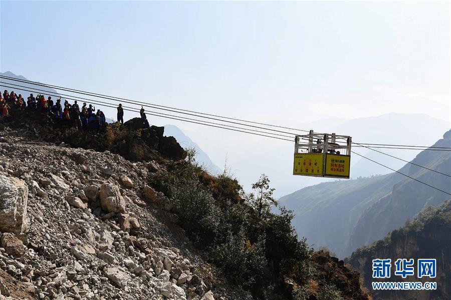 阿布洛哈擺渡車(chē)在峽谷兩岸運(yùn)行調(diào)試(2019年12月30日攝)。新華社記者江宏景攝